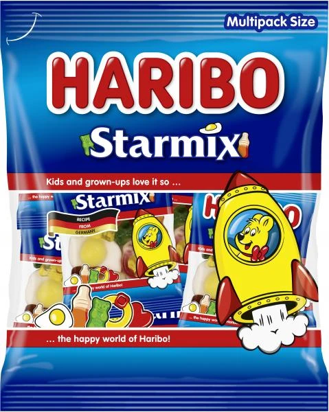 Starmix ist eine leckere Entdeckungsreise durchs bunte Haribo Universum. Von Schaumzucker-Liebesherzen über Fruchtgummi-Freundschaftsringe bis hin zum legendären Goldbären. Ein galaktisches Geschmacksabenteuer für die ganze Familie.