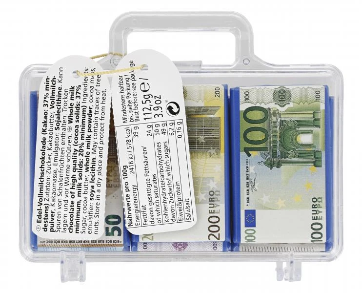 Euro-Koffer mit Edel-Vollmilch Chocoladen.