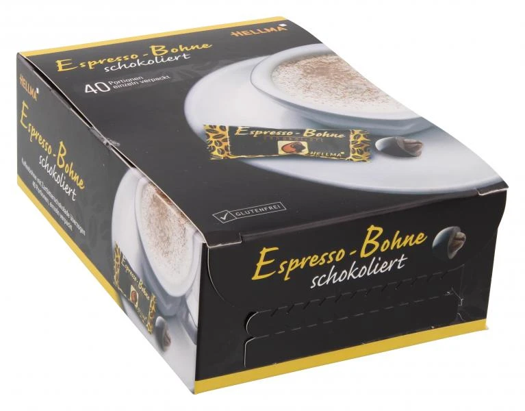Das besondere Extra zu Cappuccino & Co. Espressobohne in Zartbitter-Schokolade. Die temperamentvolle Kaffeebohne, umhüllt von köstlicher Zartbitter-Schokolade.