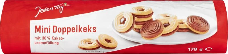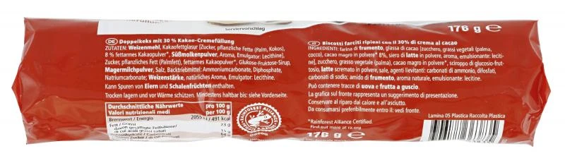 Doppelkeks mit 30% Kakao-Cremefüllung.