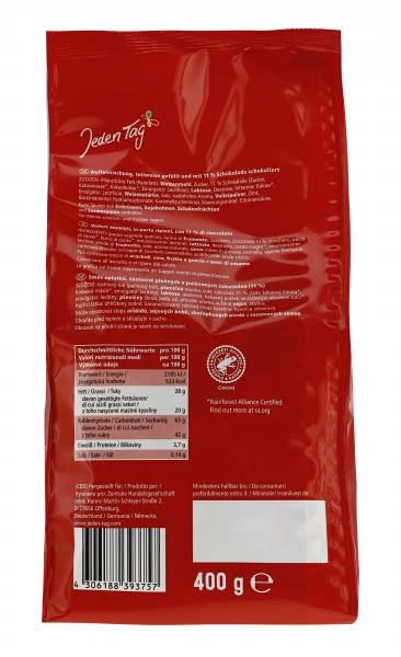 Waffelmischung, teilweise gefüllt und mit 11% Schokolade schokoliert.