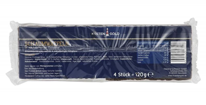 Schaumzuckerware mit kakaohaltiger Fettglasur.