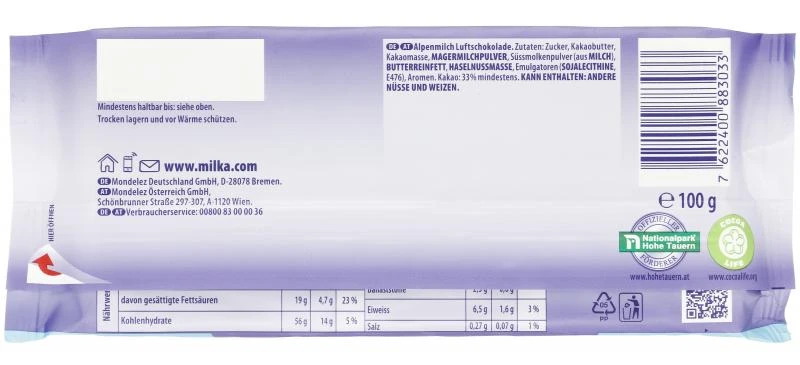 Milka Luflée ist der zartschmelzende Schokoladengenuss aus lecker-luftiger Alpenmilch Schokolade.