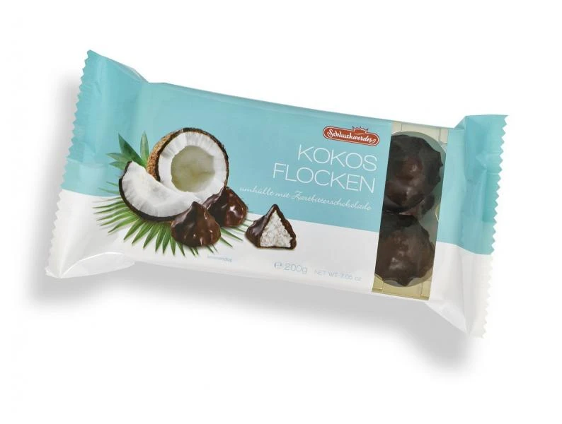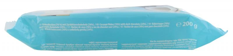 Saftige Kokosrapseln überzogen mit knackiger Zartbitterschokolade.