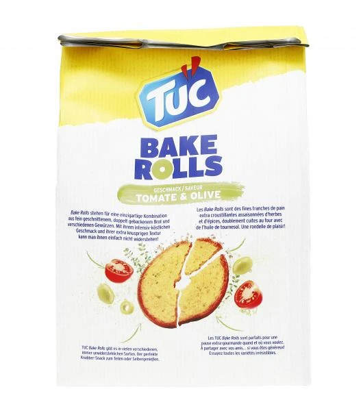 Bake Rolls stehen für eine einzigartige Kombination aus fein geschnittenem, doppelt gebackenem Brot und verschiedenen Gewürzen. Mit ihrem intensiv-köstlichen Geschmack und ihrer extra knusprigen Textur kann man ihnen einfach nicht widerstehen! TUC Bake Rolls gibt es in vielen verschiedenen, immer unwiderstehlichen Sorten. Der perfekte Knabber-Snack zum Teilen oder Selbergenießen.