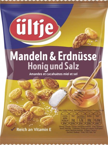 Ab sofort erwartet alle Snack-Liebhaber ein neuer Nuss-Mix: Mandel Erdnuss Mix Honig & Salz. Vor allem die anspruchsvollen Genießer werden diesen gelungenen Mix schätzen. Die Geschmackskombination von leichter Honigsüße mit dezentem Salzgeschmack verleiht dem Mix aus aromatischen Mandeln und Erdnüssen eine besondere Note.